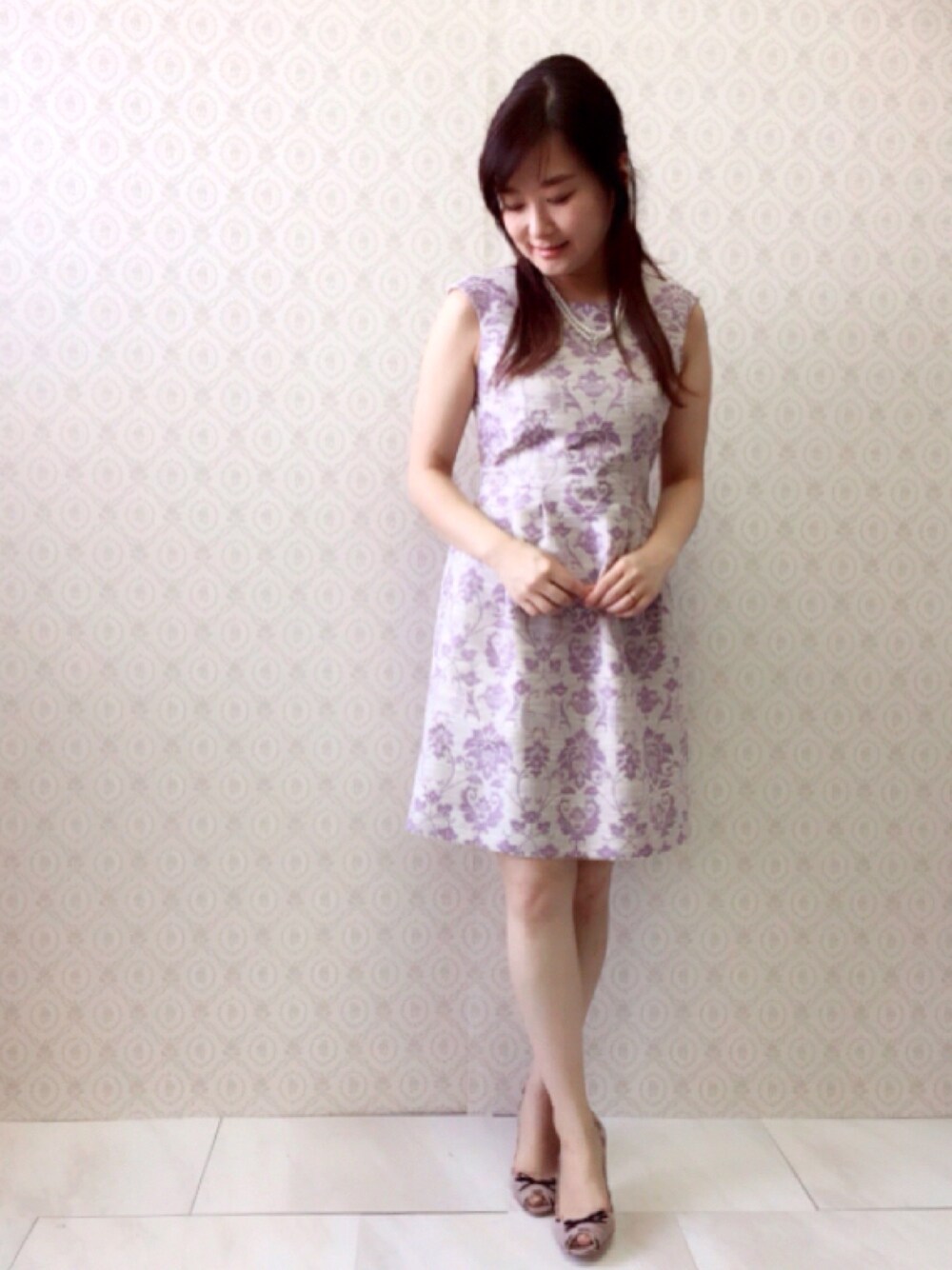 AIのワンピース「美しい模様を描いたオーナメント柄スラブジャガードワンピース」を使ったコーディネート
