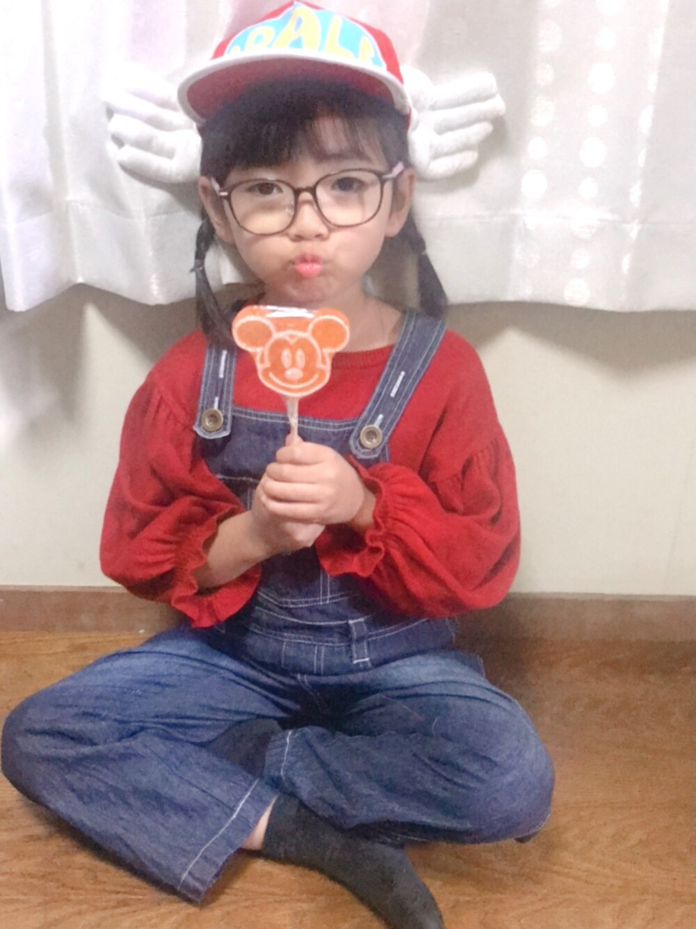 happy halloween✨✨ 前からアラレちゃんに似てるんじゃないか⁉️と母は思ってましたよ(笑) メガネなんて、普段のまま(笑) ひょうきんな顔はそっくり(笑) うんこ💩棒は嫌だって言うので、ミッキーの飴を持たせました😂😂 youtubeで、アラレちゃんのアニメ見せたら、たいそう気に入った様子で、アラレちゃんやドラゴンボールで育った母は、嬉しい限りです😆😆💗💗💗