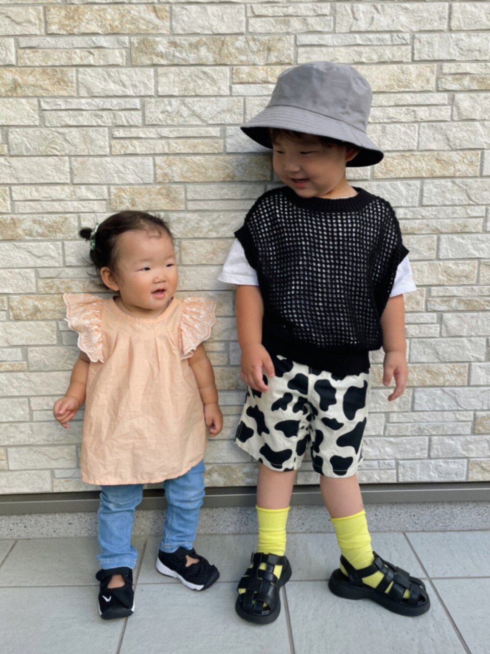 見て頂きありがとうございます🌷.* りーのコーデを撮ろうと思ったら娘が乱入👶🏻 なんのリンクもしてません🤣 この2人顔そっくりすぎるな😎