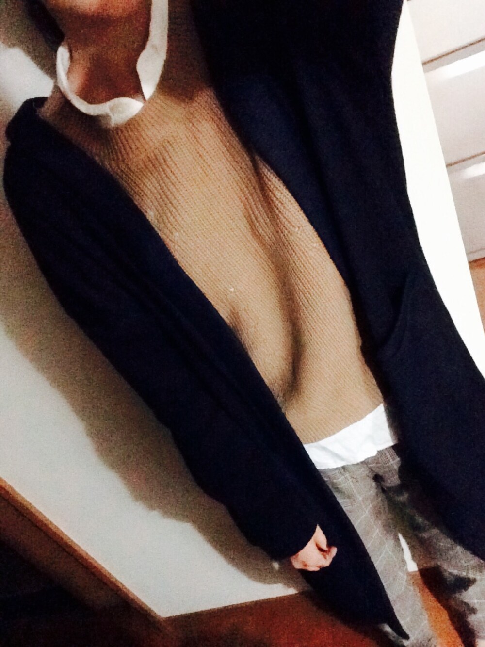 画像汚い 見事なまでのプチプラコーデ ロングカーデはネイビー メガネかけてたんだけど 鏡に映った姿がハリーポッター