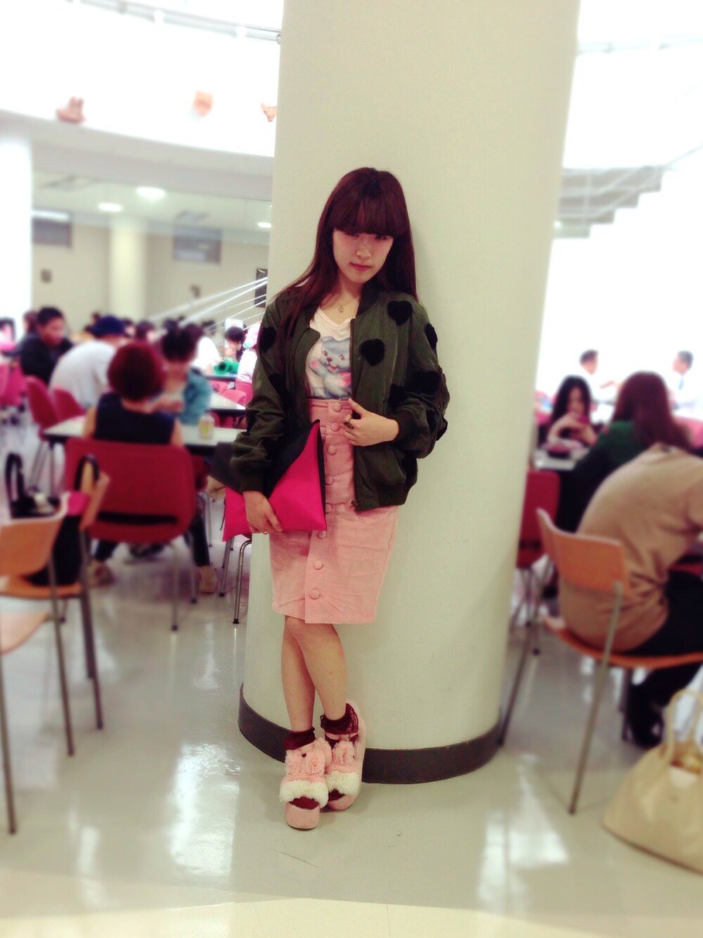 先日買ったばかりのMA-1💕 CandyStripperの新作で、絶対に欲しくて予約していたものです☺️ 今まであまり着たことの無い色ですが、私の大好きなピンクととっても相性が良いのでカーキ色を選びました! ジャストサイズで着たいのでXSサイズを選んだこともポイント👍 スモーキーなピンクで統一したコーディネートにカーキを羽織って、差し色にビビッドピンクのクラッチバッグを持ちました💖 このMA-1、今季絶対に活躍します❗️ カーキ色オススメです〜✨✨