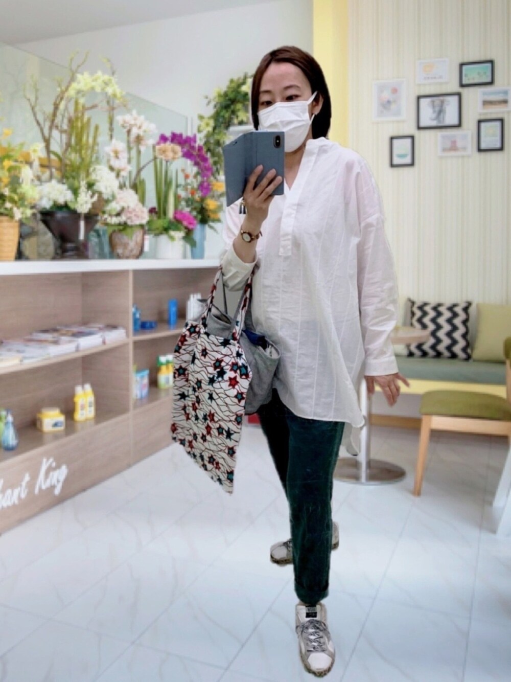 ソトシゴト。 ストライプステッチのある stamp and diaryのロングブラウスは絶妙なバランスの形💓 真夏までサラッと着られそう‼️