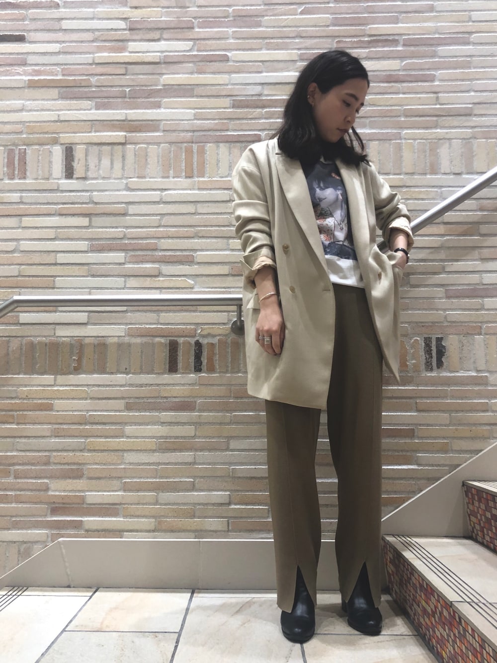 オーバーサイズのジャケットは、ダブルでマニッシュな印象に◎ リブパンツやフォトTシャツと合わせてカジュアルな着こなしできる万能アイテムです!