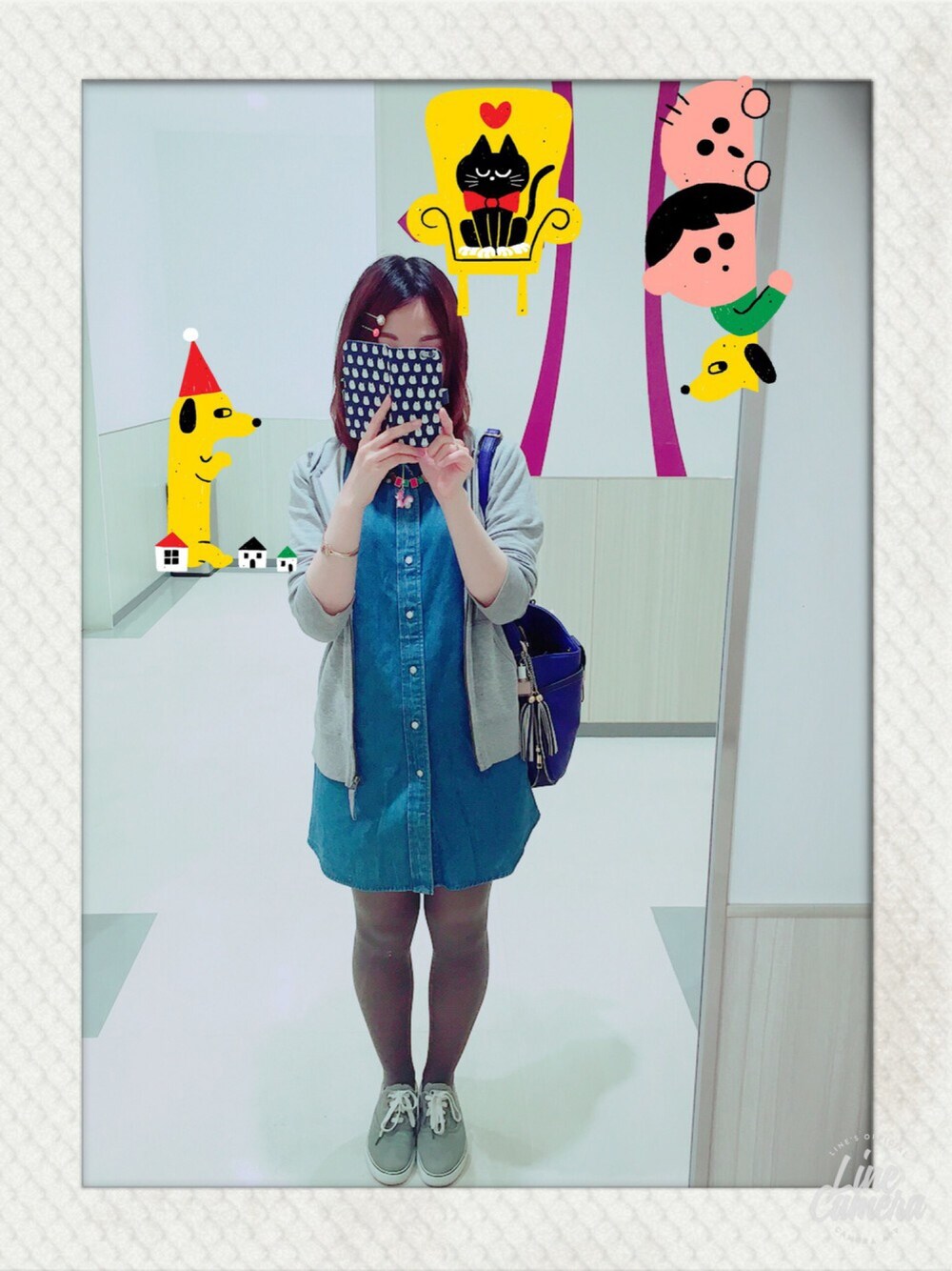 デニムシャツをワンピース風に( ^ω^ ) 襟元のネックレスもポイント( ^ω^ ) シャツ、スニーカーが古着( ^ω^ )
