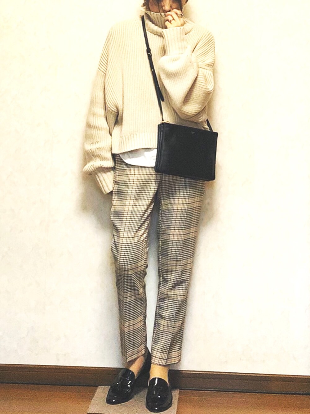 ベージュコーデ ・ 小物のブラックで引き締め