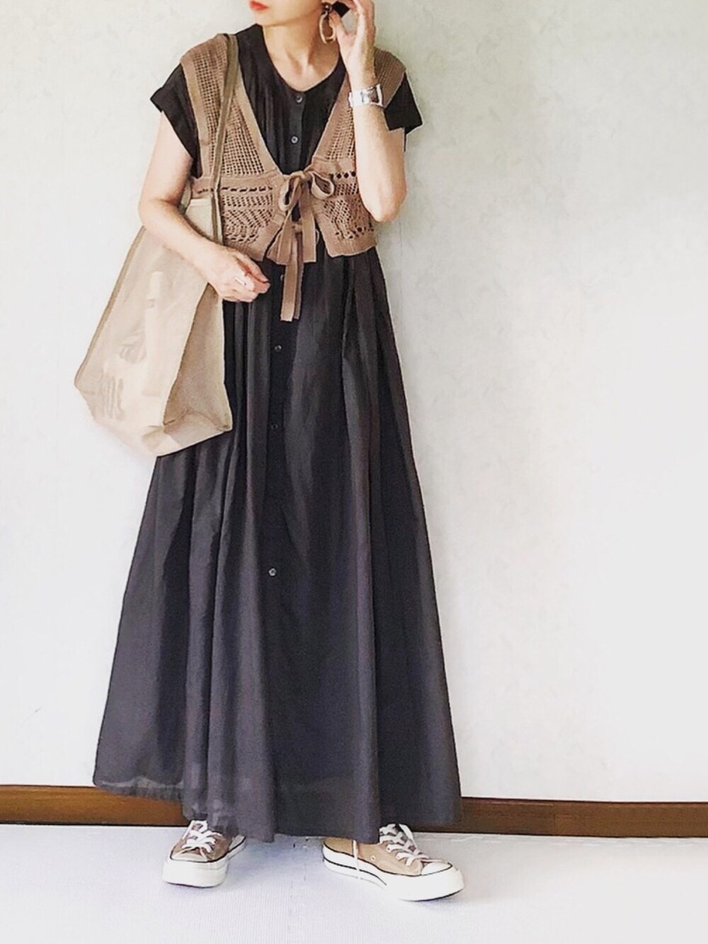 しまむら のインド綿ワンピ×ニットビスチェ コーデ☺︎