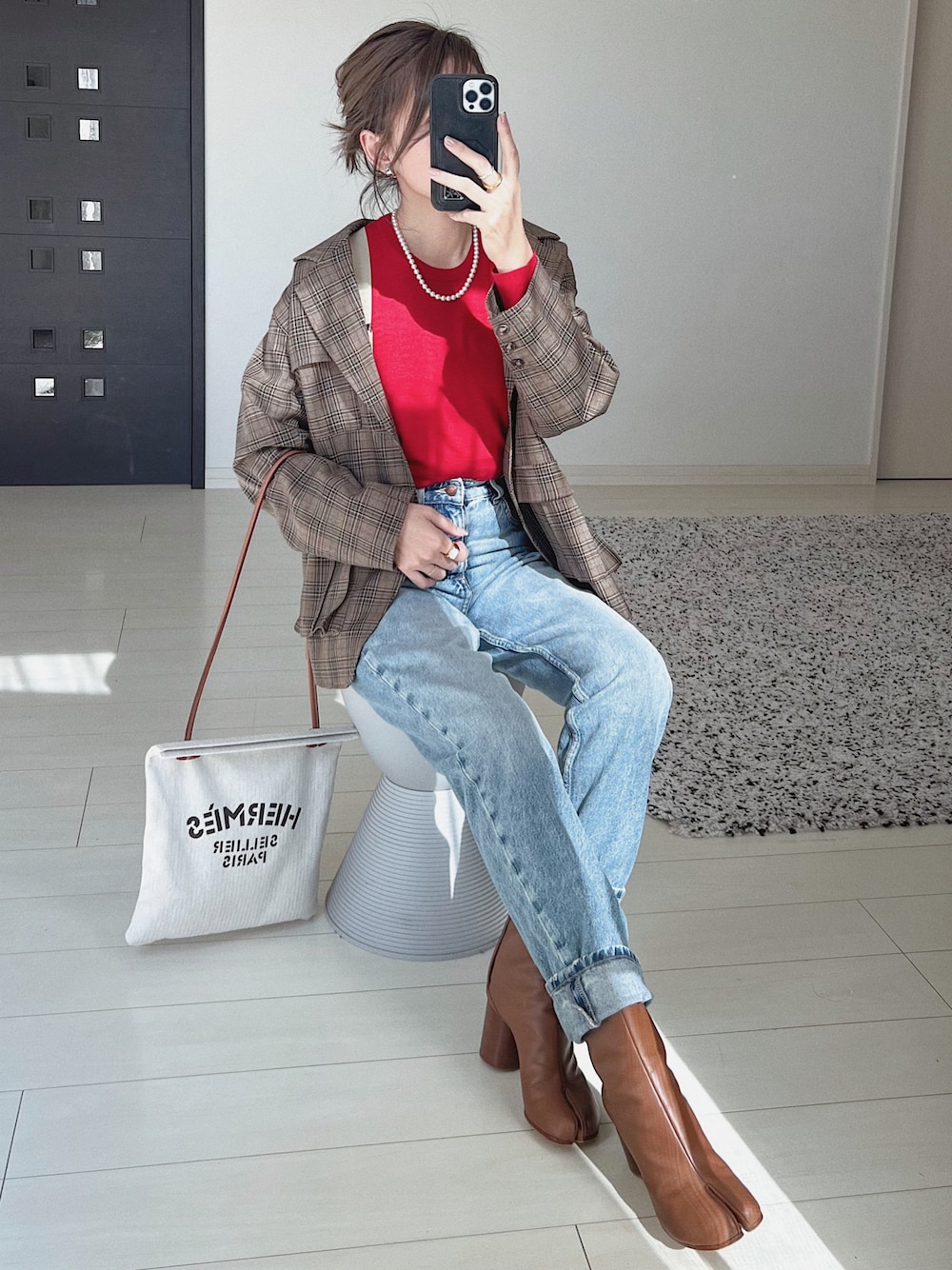 UNIQLOの エクストラファイン メリノクルーネックセーター🧶 ㅤㅤㅤㅤㅤㅤㅤㅤ 赤のニットが欲しくて探してて 理想的な色味の赤を見つけてGET 上質ウール100%で高見え✨ イロチも欲しくなる ㅤㅤㅤㅤㅤㅤㅤㅤ @amoria______ × @interplay_tokyo とのコラボジャケット シルエット、立体ポケット、 袖を外せばベストになるし 細部までこだわりの詰まった素敵なジャケット✨