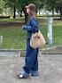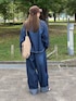 @notch._official の カットオブデニムシャツと タックボリュームデニムパンツ どちらもゆるっとシルエットが とっても可愛い😍 シャツは前後差ある丈感と カットオフしたデザインが ラフだしこなれ感ある✨ パンツはタックとギャザーで ボリュームシルエット⸝⋆ ウエスト落としてずるっと着たり、 ハイウエストにしたりで 雰囲気変えて楽しめちゃう🫶 私は160cmでパンツはTMを 着用してます🥰 インスタのストーリーにURL貼るね✨ @yc__mam
