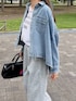 @amely_ の デニムワイドシャツ ワイドシルエットとコンパクトな丈で パンツでもスカートでも バランス取りやすい✨ ドロップショルダーで こなれ感と華奢見えも🫶 私はライトブルー着てます ZOZOで 1000円OFFクーポンで 3980円😍‼️ インスタの ストーリーにURL貼るね🥰 @yc__mam #PR #エミリー#AMELY #ZOZOTOWN#秋コーデ#着回しコーデ