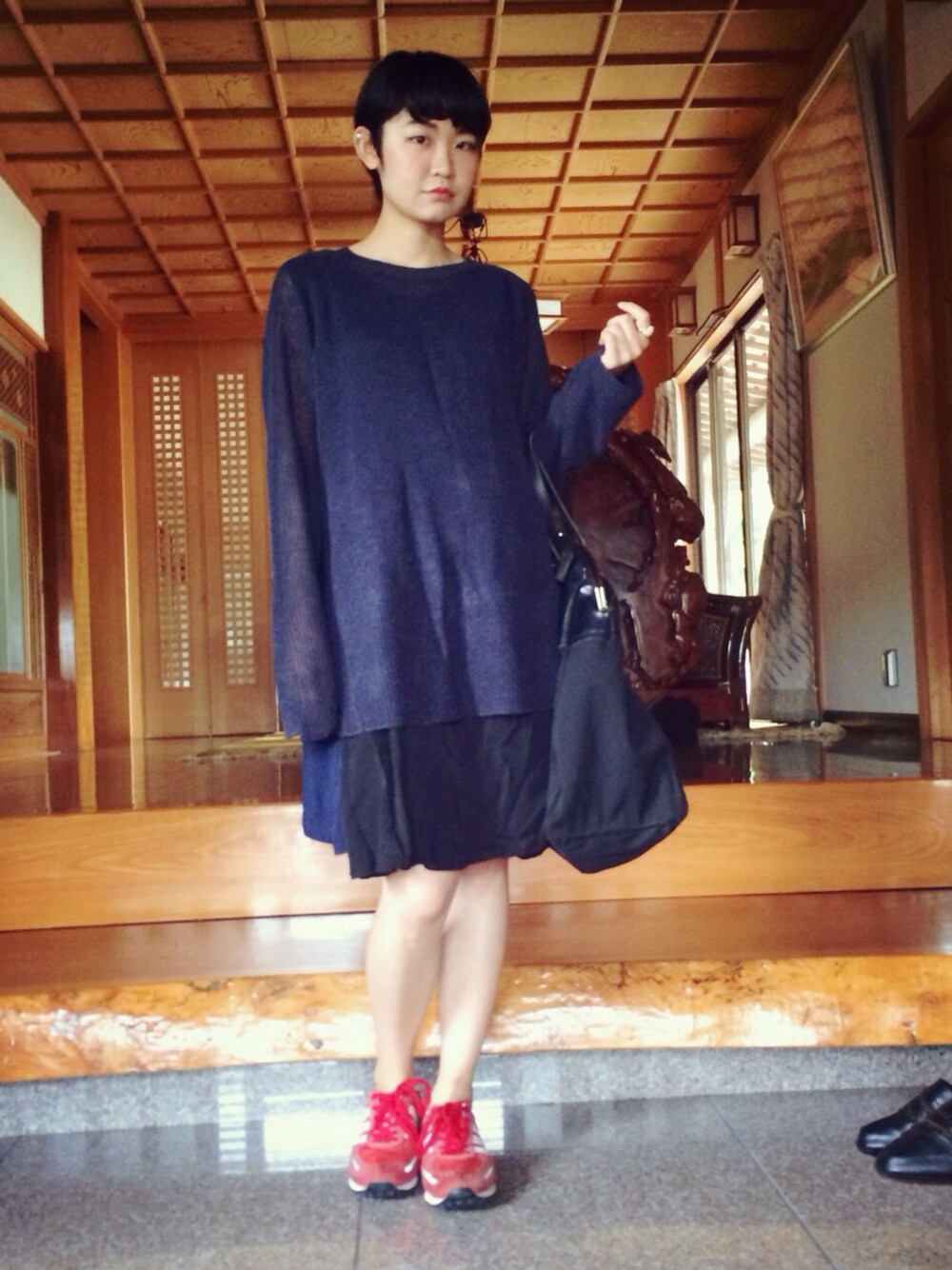 先日、久しぶりに帰省しました お父さんのニットで ゆるゆるしてるん(・ω・)ノ