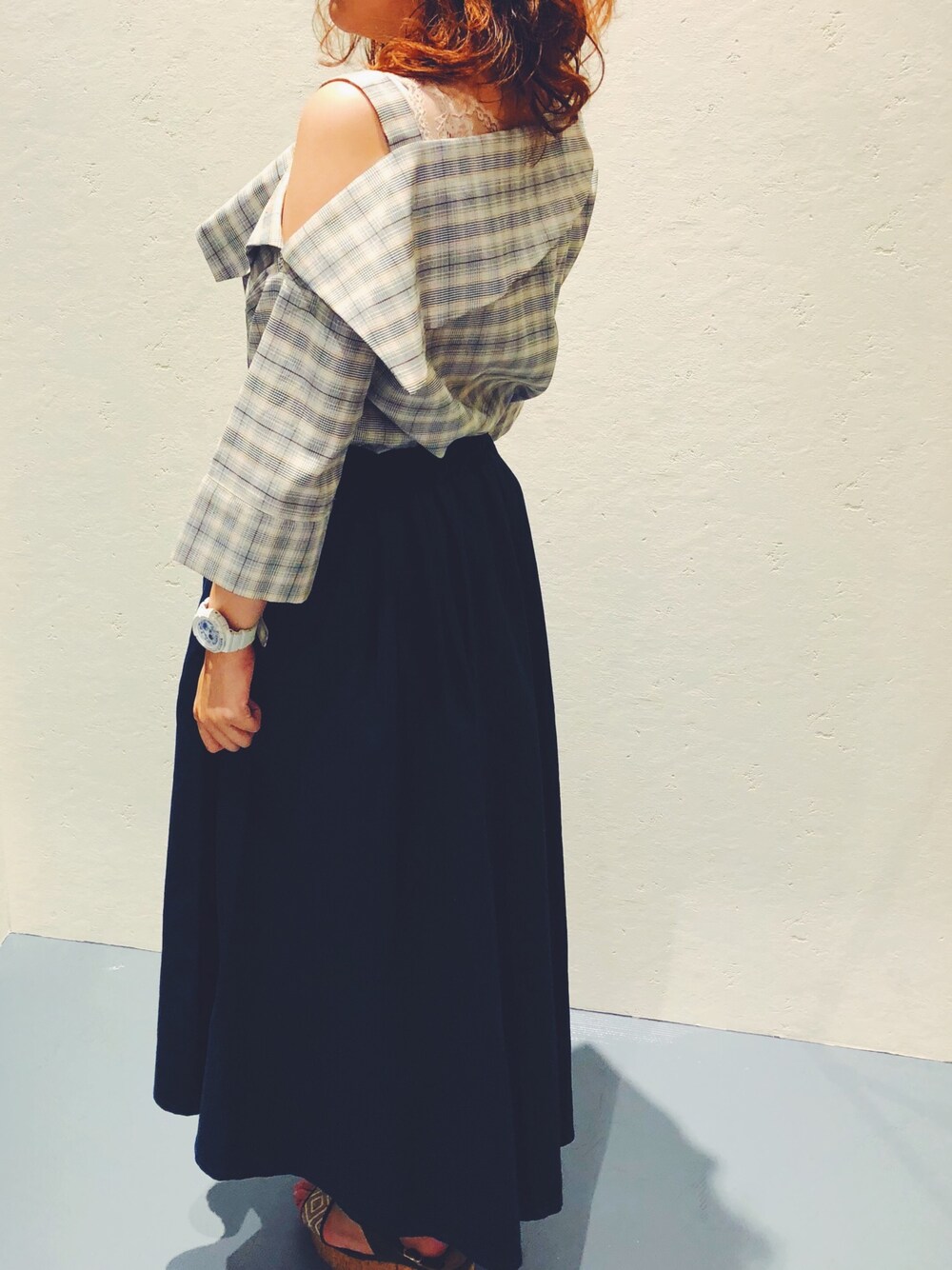 チェックのワンショルブラウスが旬✨ トレンドのチェックとワンショルダーが1つになっているのは珍しいかも! ワンショルダーのデザインでここまでゆったりしたものは少なくて、他のブランドはリブの生地だったりカットソーでも細身のものが多いです💦 ゆったりめの方が着やすく、これは二の腕が隠れる袖の長さなのでママさんとかにもおススメです😊