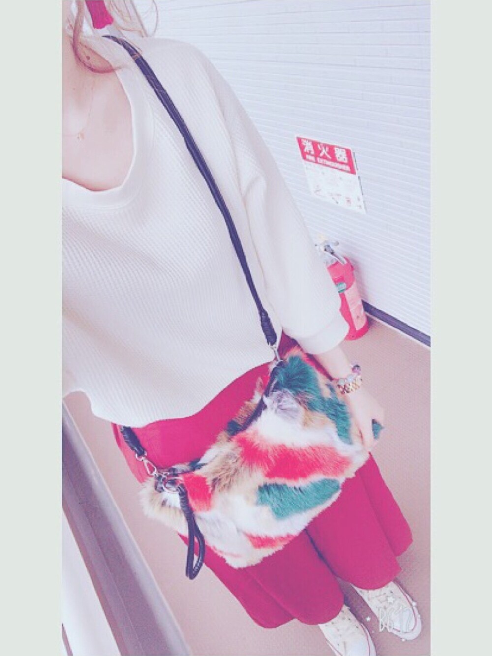 * 何日か前のやつ🌈 ひと足お先に秋🍂☺️ ZARAのファーバッグは紐を外せば クラッチにもなるよん🤗💘 SALEでお安くGET😎💙💜💛