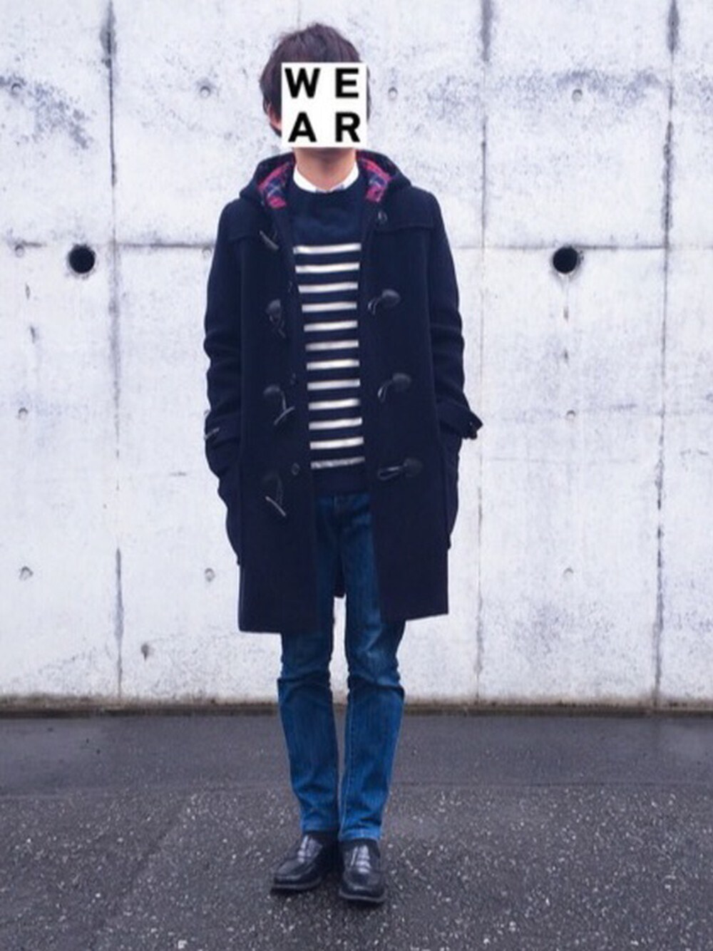 こんにちは! 今日は柄×柄ロンドンスタイルです! 柄×柄ではコーデがうるさくなってしまうのでは?と思ってしまいますが…。 ベーシックなボーダーニットなのでチェックのダッフルと合わせても違和感がないのです! ちなみに僕が持ってるREGALはすべて古着なんです! ではでは!
