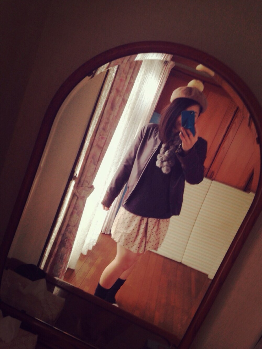 ベレー帽とスカート。
