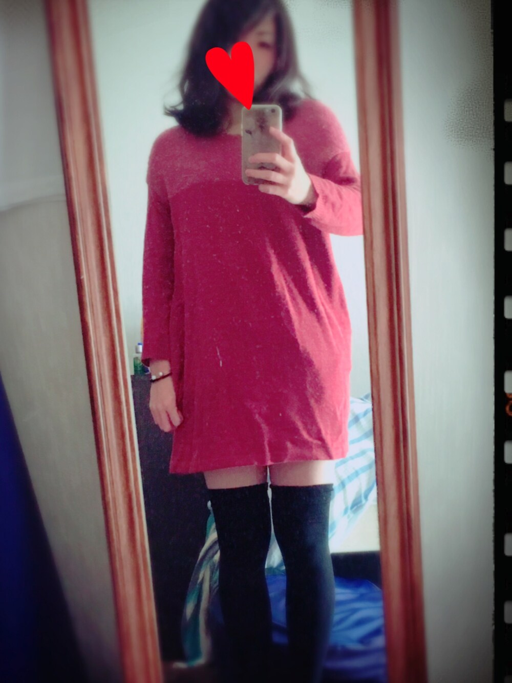 ニットワンピ。2年前に買ったniko.and...これ、お気に入り。笑 この時だけ、ニーハイ履ける。笑