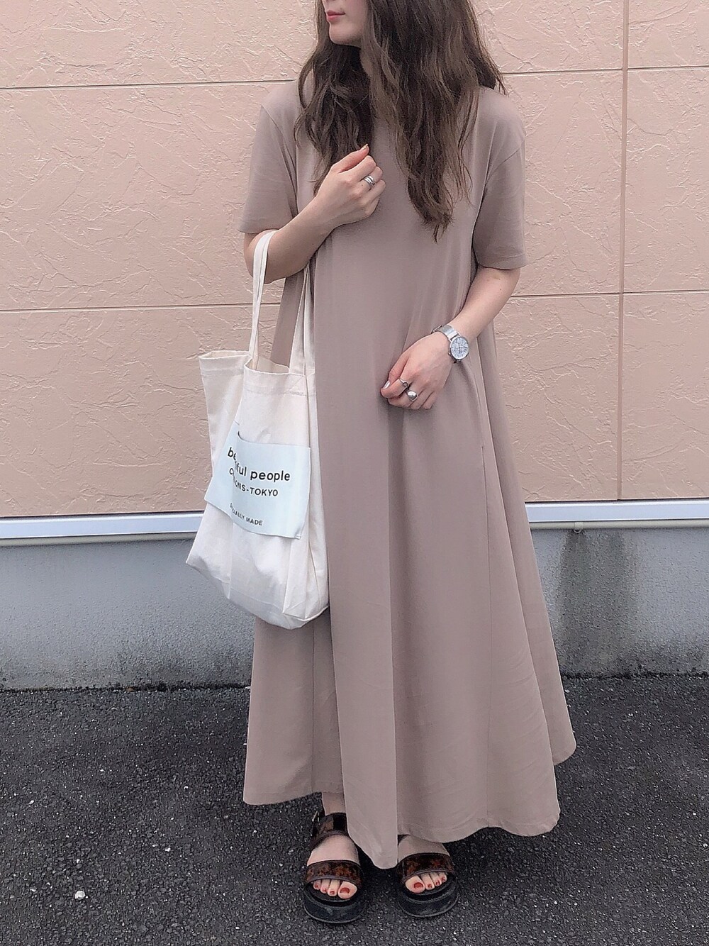 GU新作のワンピース Aラインワンピース❤︎ 前回とはまた違った色味で 欲しくなって即買いしました 柔らかい茶色がすきです😌