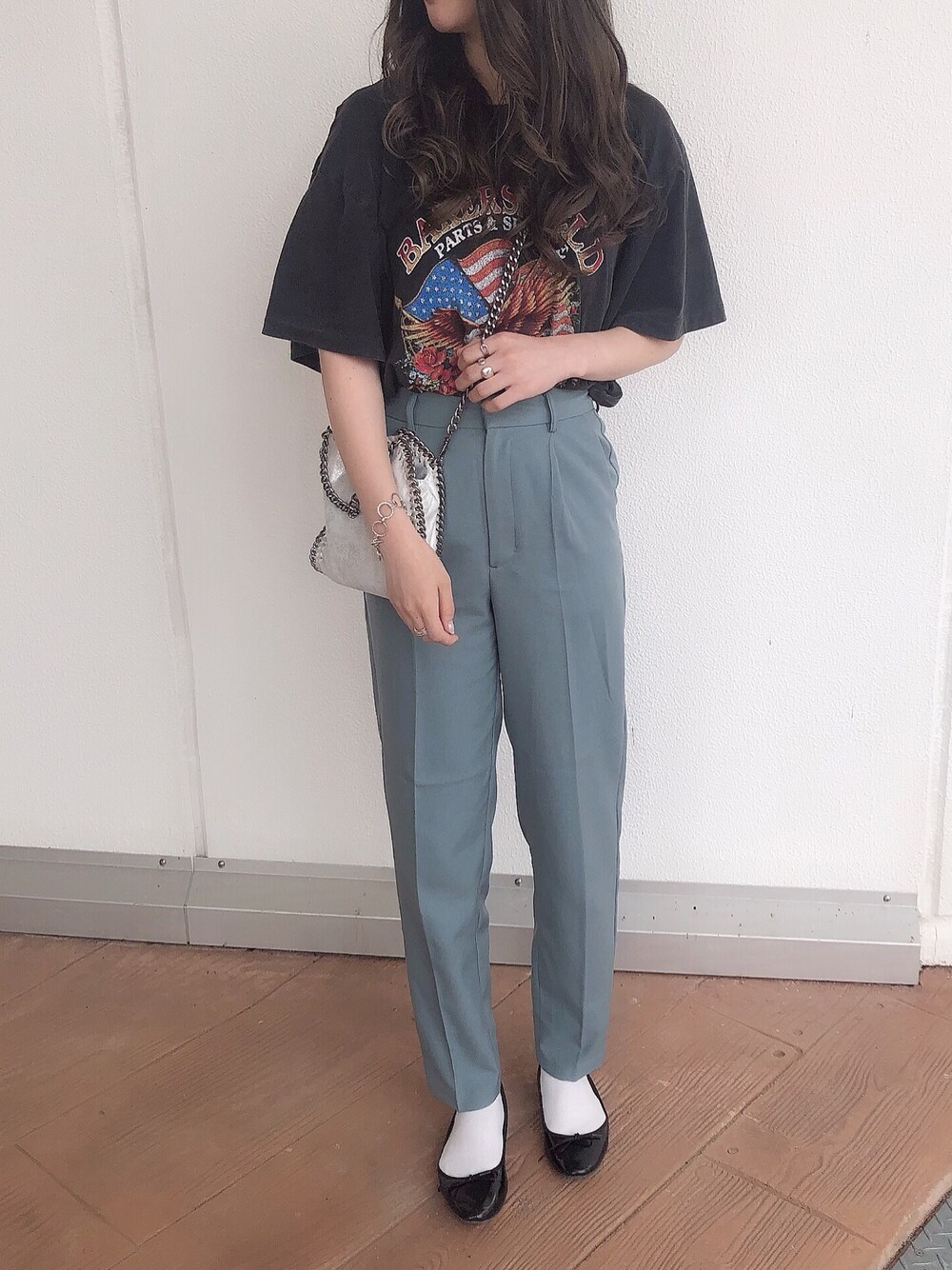 、 きれいめのテーパードパンツに カジュアルなTシャツコーデ😌