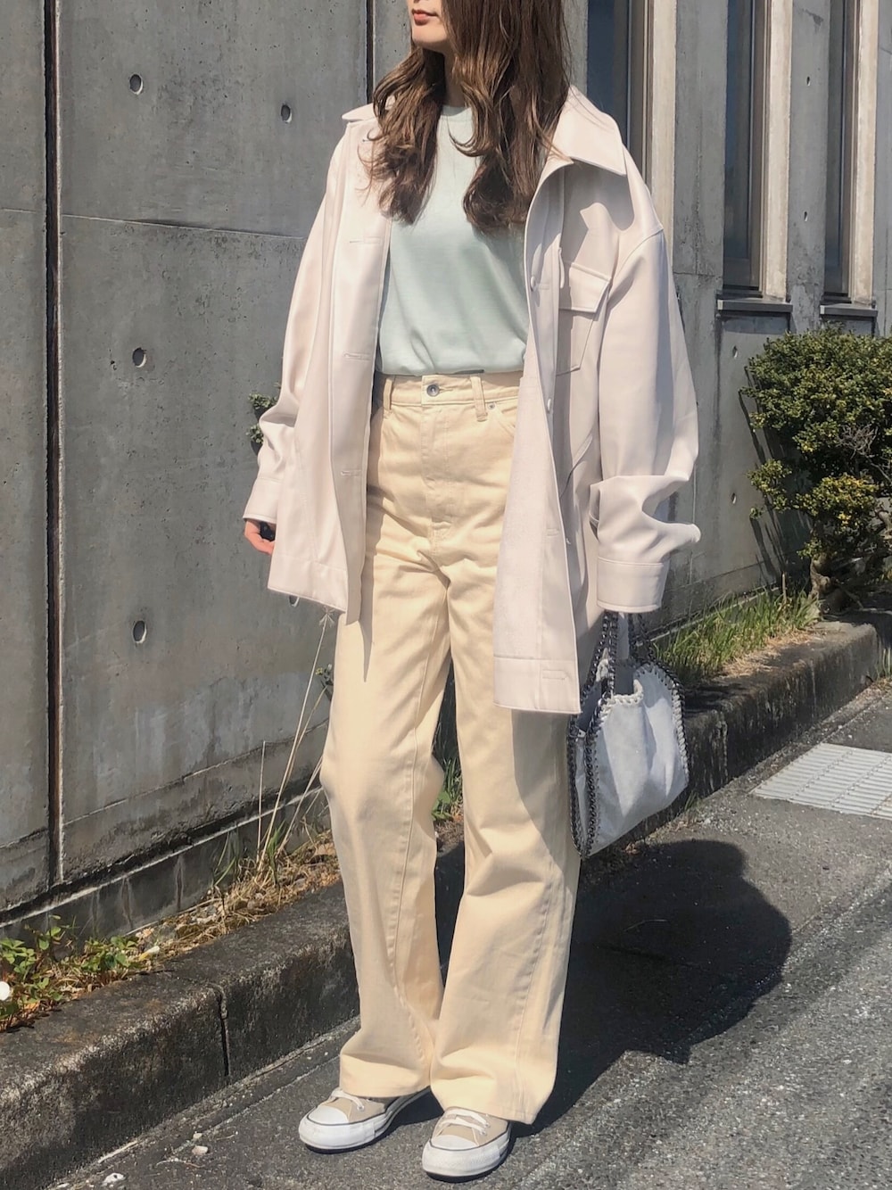 、 差し色のライム🌿🌿 ストレートのシルエットパンツは 長めにずるっとはくのが🙆🏻♀️ 、 、 、 Instagram 👉 y__m930