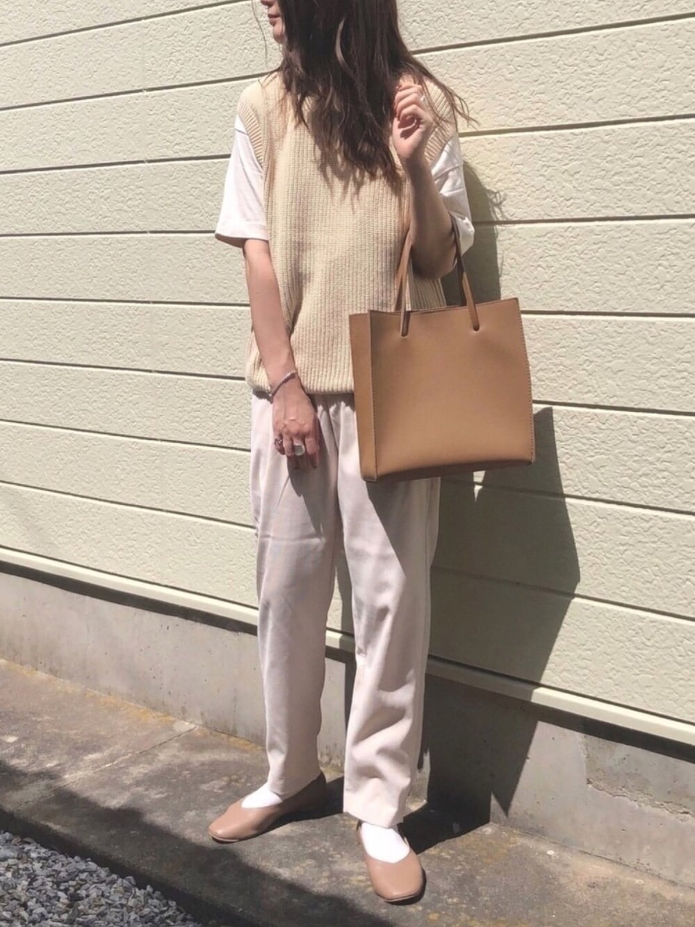 yumikoのニット/セーター「オーバーサイズクルーネックベスト」を使ったコーディネート