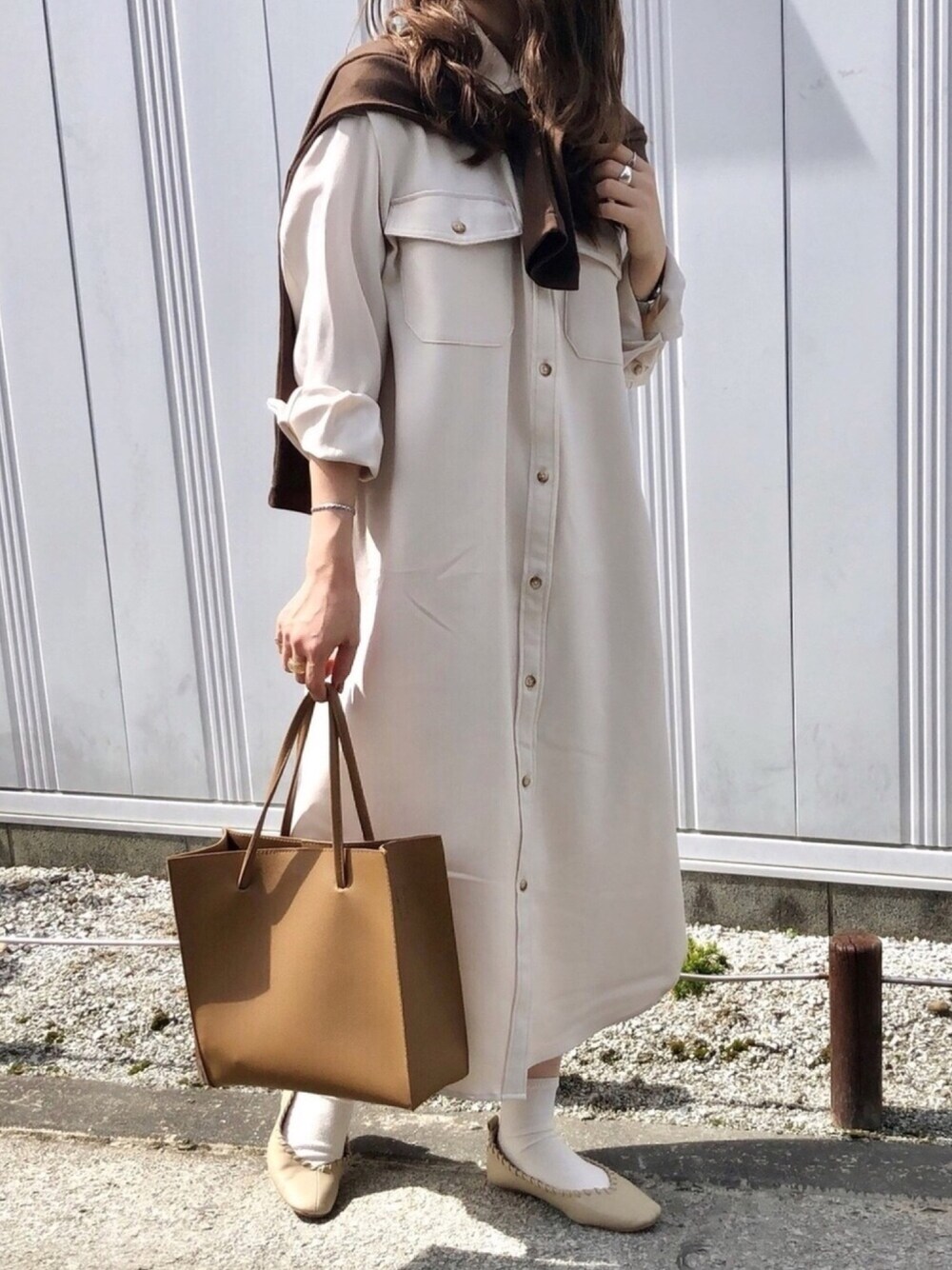 、 シャツワンピにカーディガン肩掛け🍂🍂 、 、 Instagram👉y__m930
