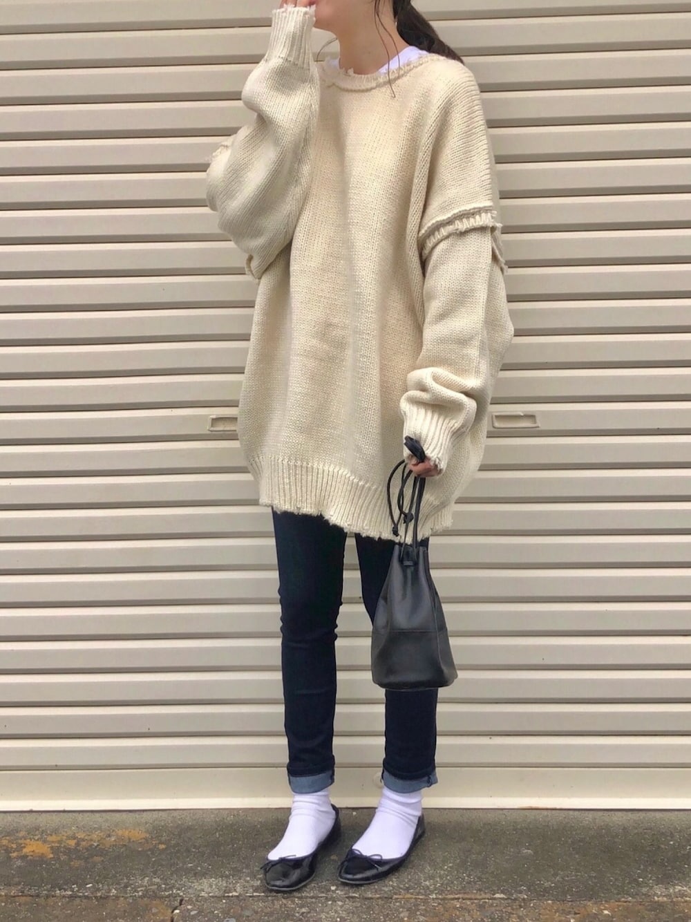 yumikoのニット/セーター「スーパービッグダメージマルチウェイニット/バックスリットデザイン」を使ったコーディネート