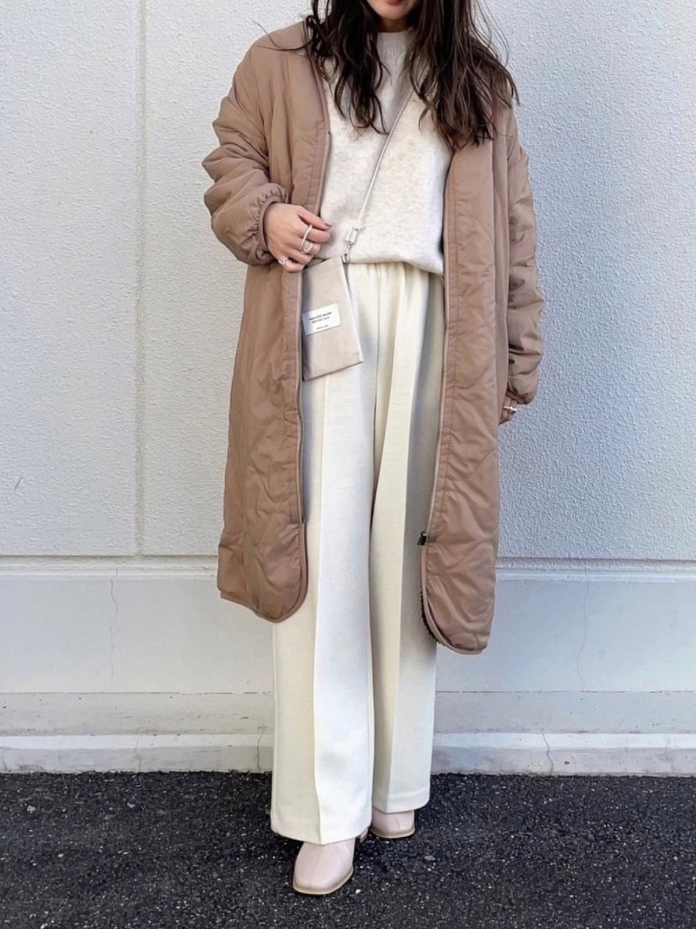 yumikoのノーカラーコート「Eco Heatex リバーシブルボアコート」を使ったコーディネート