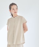 yumikoのシャツ/ブラウス「リネン混バンドカラーフレンチスリーブシャツ」を使ったコーディネート