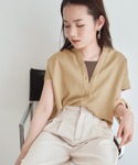 yumikoのシャツ/ブラウス「リネン混バンドカラーフレンチスリーブシャツ」を使ったコーディネート