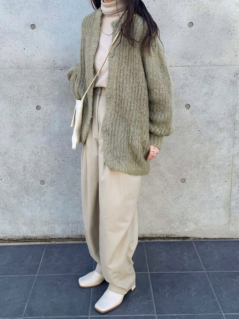 yumikoのカーディガン/ボレロ「【CLANE(クラネ)】COLOR MOHAIR SHAGGY CARDIGAN/カラーモヘアシャギカーディガン/11106-1092」を使ったコーディネート