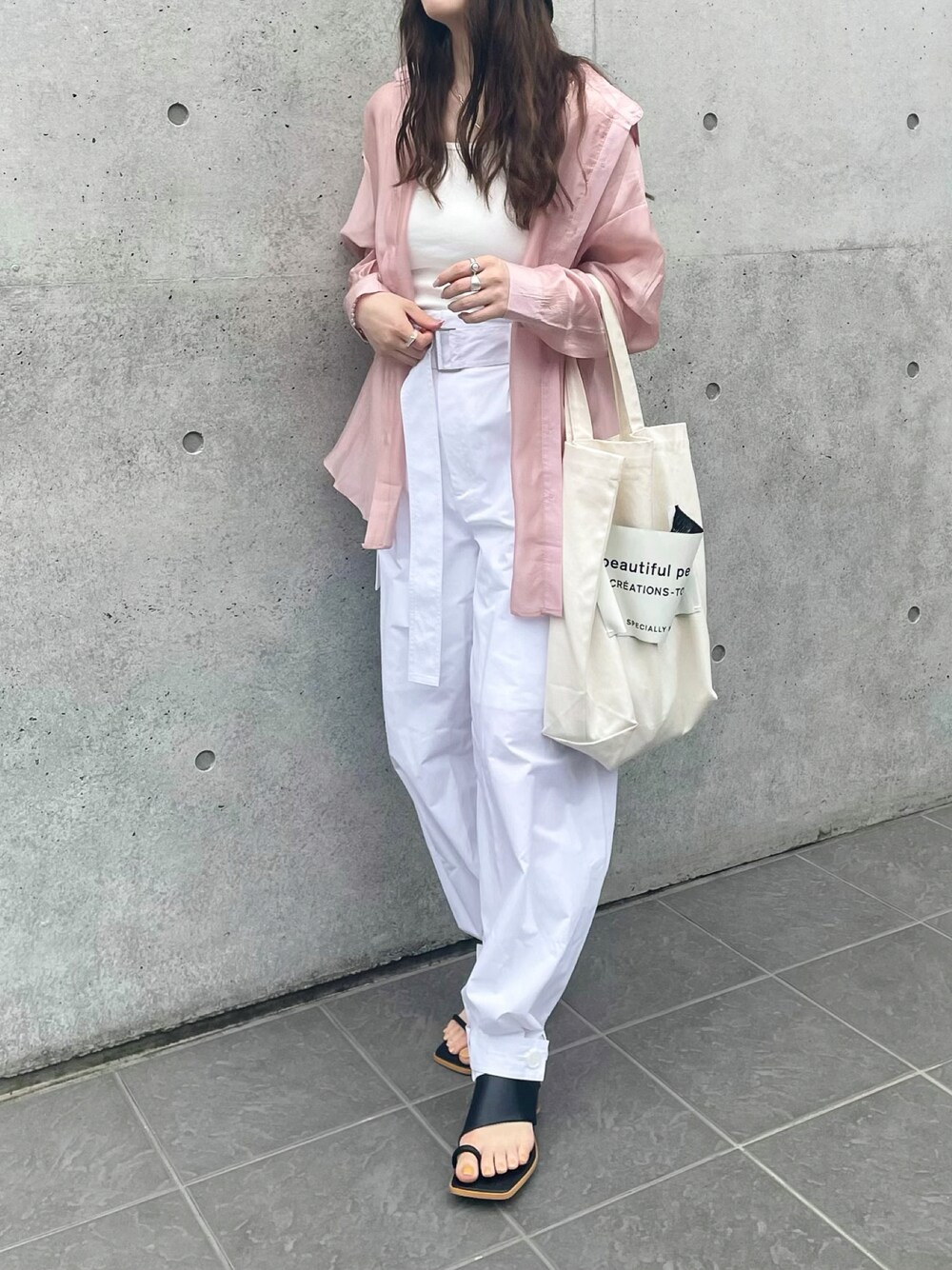 トレンドのカーゴパンツ シアーシャツでほんのり肌見せして 女っぽく🤍🤍 Instagram👉y__m930
