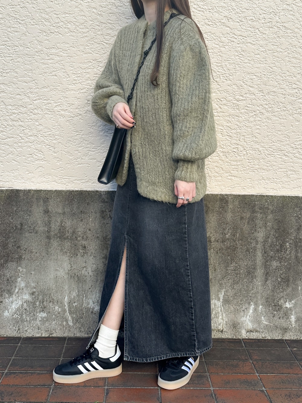 yumikoのカーディガン/ボレロ「【CLANE(クラネ)】COLOR MOHAIR SHAGGY CARDIGAN/カラーモヘアシャギカーディガン/11106-1092」を使ったコーディネート