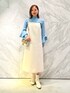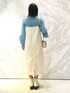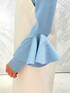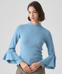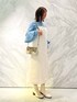 ホワイト×ブルーの爽やかコーディネート ・ラッフルスリーブリブニットプルオーバー スッキリシルエットに袖には華やかなラッフルをあしらったデザインです。 シンプルながらお洒落な雰囲気になるニットです。 ・トリプルクロスチェーンストラップワンピース シンプルなサック型のジャーパースカートは、肩のストラップがチェーンなのでアクセントになり少しモードな印象になります。