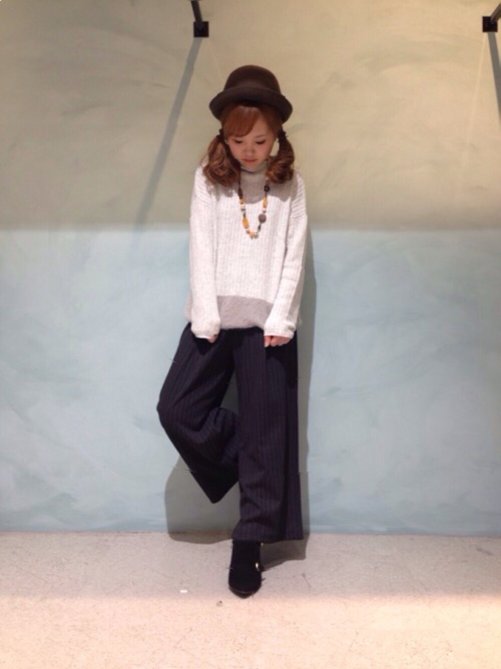 こんばんは'٩꒰。•◡•。꒱۶' 今日は大人っぽいの意識して調子のってだいぶカッコつけてます★゛ 全くいつもの自分じゃなさすぎて恥ずかしすぎるー(/≧ω\) ワイドパンツの似合わないっぷりにかなり苦戦しましたっっ笑 ヘリンボーンのワイドパンツにボトルネックのゆるニットを合わせた大人コーデです⋆。˚✩ ワイドパンツはこれより長いタイプもありますが、そちらは履く前から却下(๑*ε*乂)(ヾノ・ω・`) ゆるニットは肌ストレスゼロで、裾部分がシャギーになってます♡ 今日も見て下さってありがとうございました❤