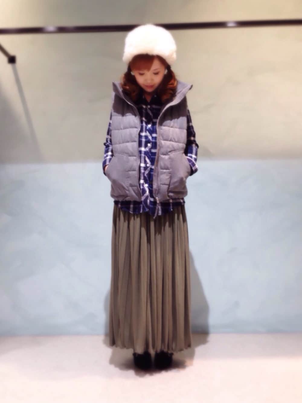 こんばんは~'٩꒰。•◡•。꒱۶'•*¨*•.¸¸♪ 春物ゾーンがお店にどんどん広がってく中、気温がどんどん下がってきちゃって…:;((•﹏•๑)));: この時期はお店の中で寒いのに無理やり春服着て風邪引くパターンが毎年のお決まりな気がするな(ノ_・,) 何となく鼻声っぽいし(|||O⌓O;) 大阪でも天気予報見たら最低気温のとこにマイナスが付いてる日があってかなり怯えてますっっ 今日はチェックシャツに春イチ押しのプリーツロングスカート⋆。˚✩ 中綿ベストであったかくしてね♡ って今はこんな薄着してる場合じゃないですよ!!笑 シャツの上にはニットを、ベストよりもコートやダウンを着て下さいー(><)/ 単なる気まぐれ投稿でした♡ しっかり防寒対策して下さいね(≧◡≦) 今日も見て下さってありがとうございました❤