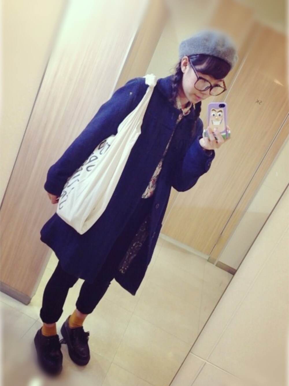 今日はちょっぴりぬくかった めがねにマスク 視界はくもり シャツイン×サスペスタイル