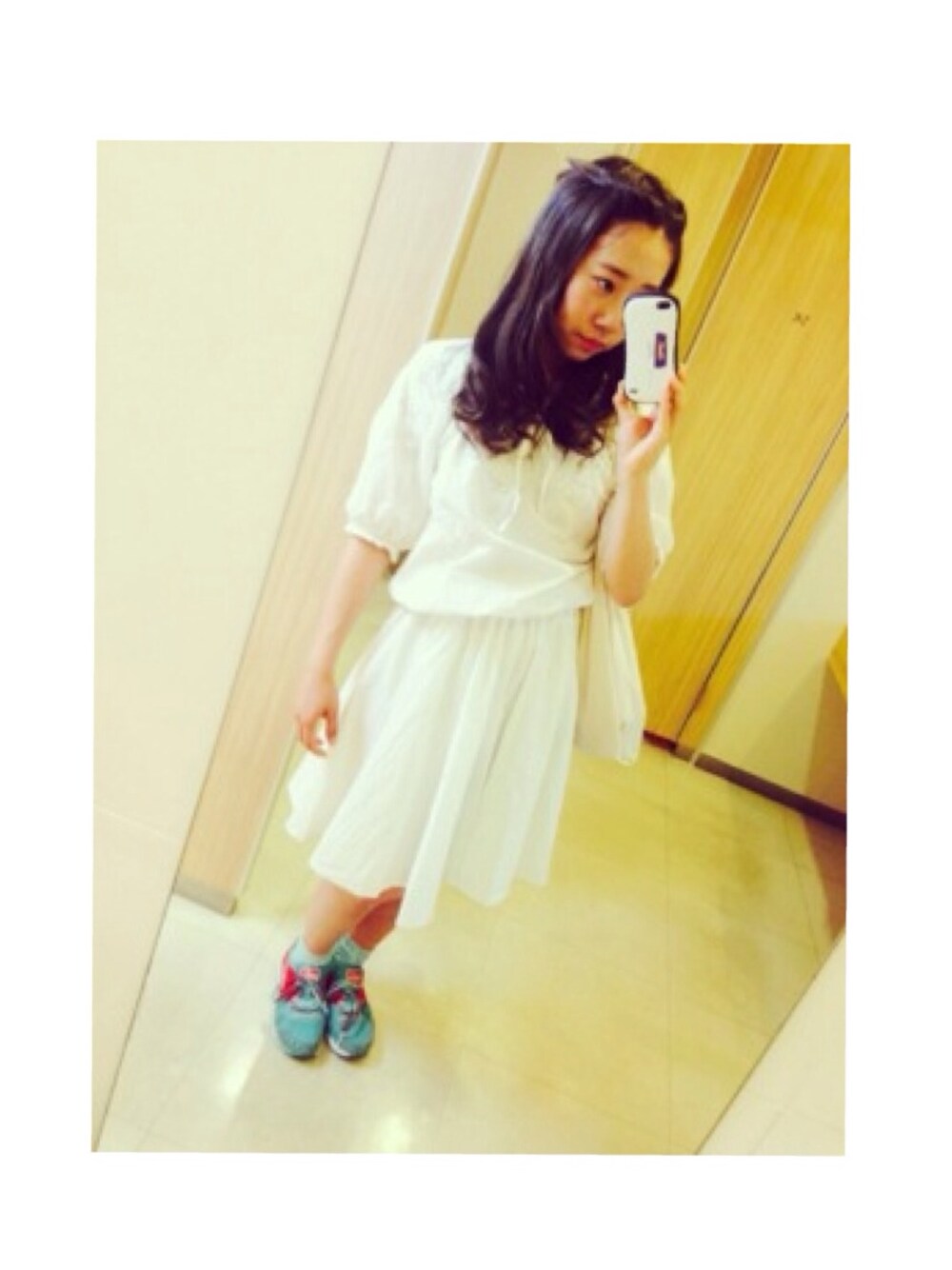 tops:used skirt:kastane socks:靴下屋 shoes:puma 憧れのホワイトコーデ 髪の毛グレーアッシュに染めました