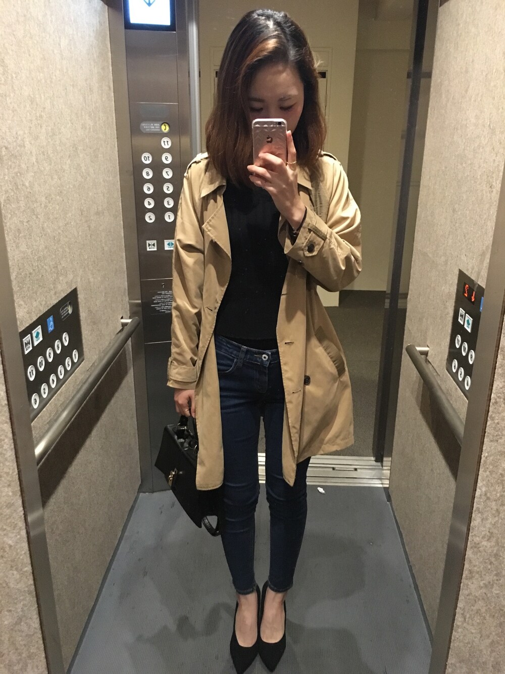 msk1022のトレンチコート「配色トレンチ」を使ったコーディネート