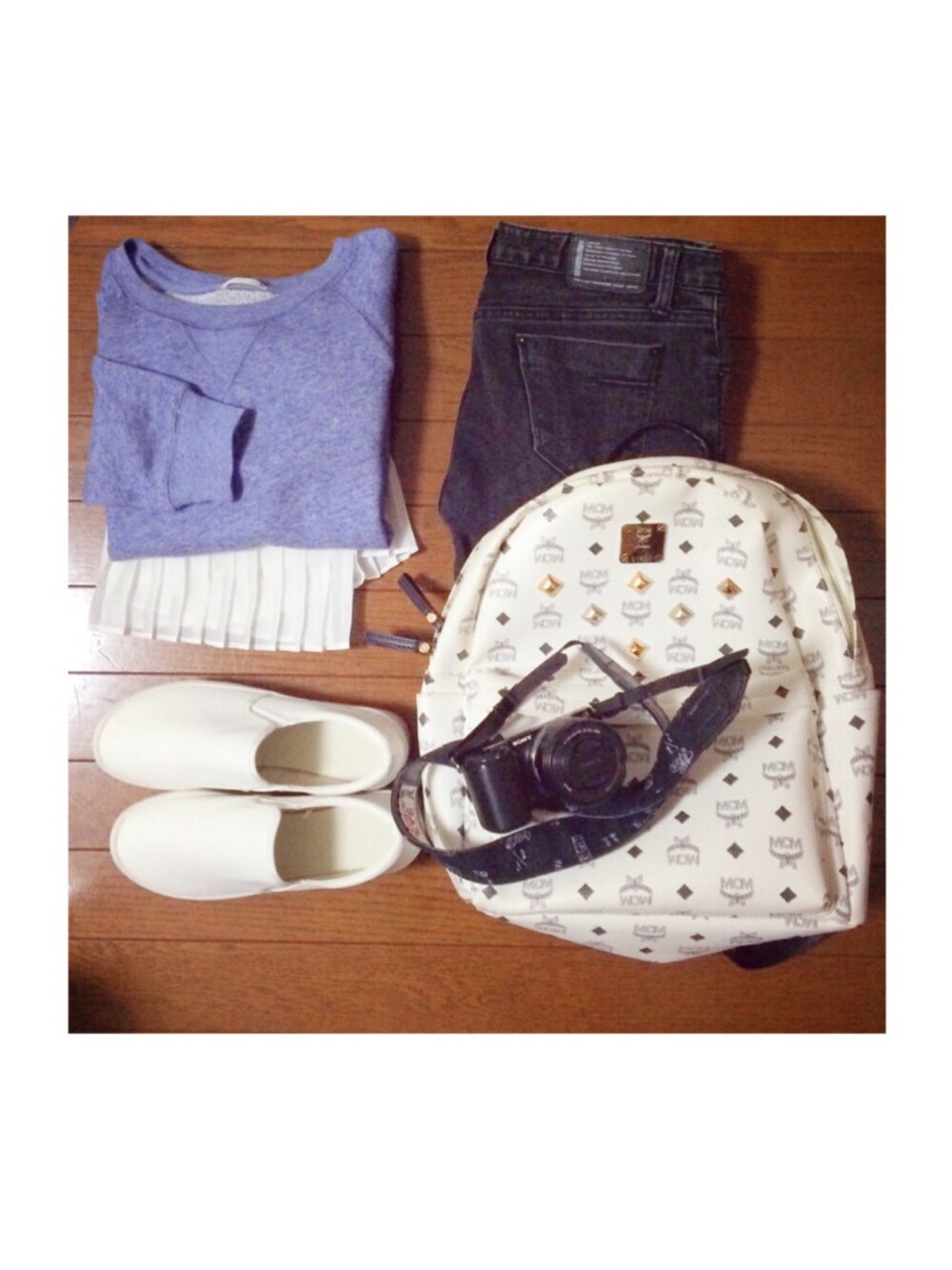 ディズニーコーデ。 トップス…GU パンツ…Dholic シューズ…写真はスリッポンだけど当日はやっぱり 歩き易さ重視でマークの靴に変えました バック…MCM バックは母のです。