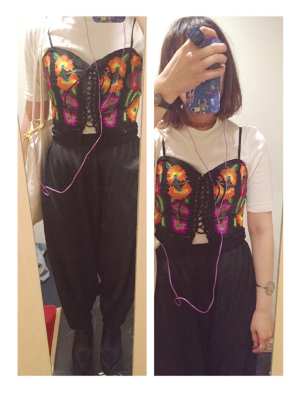 bustier➪chill t-shirt➪uniqlo pants➪d holic boots➪d holic bag➪yayoi kusamaグッズ このビスチェ、着るのは大変だけど好きです。