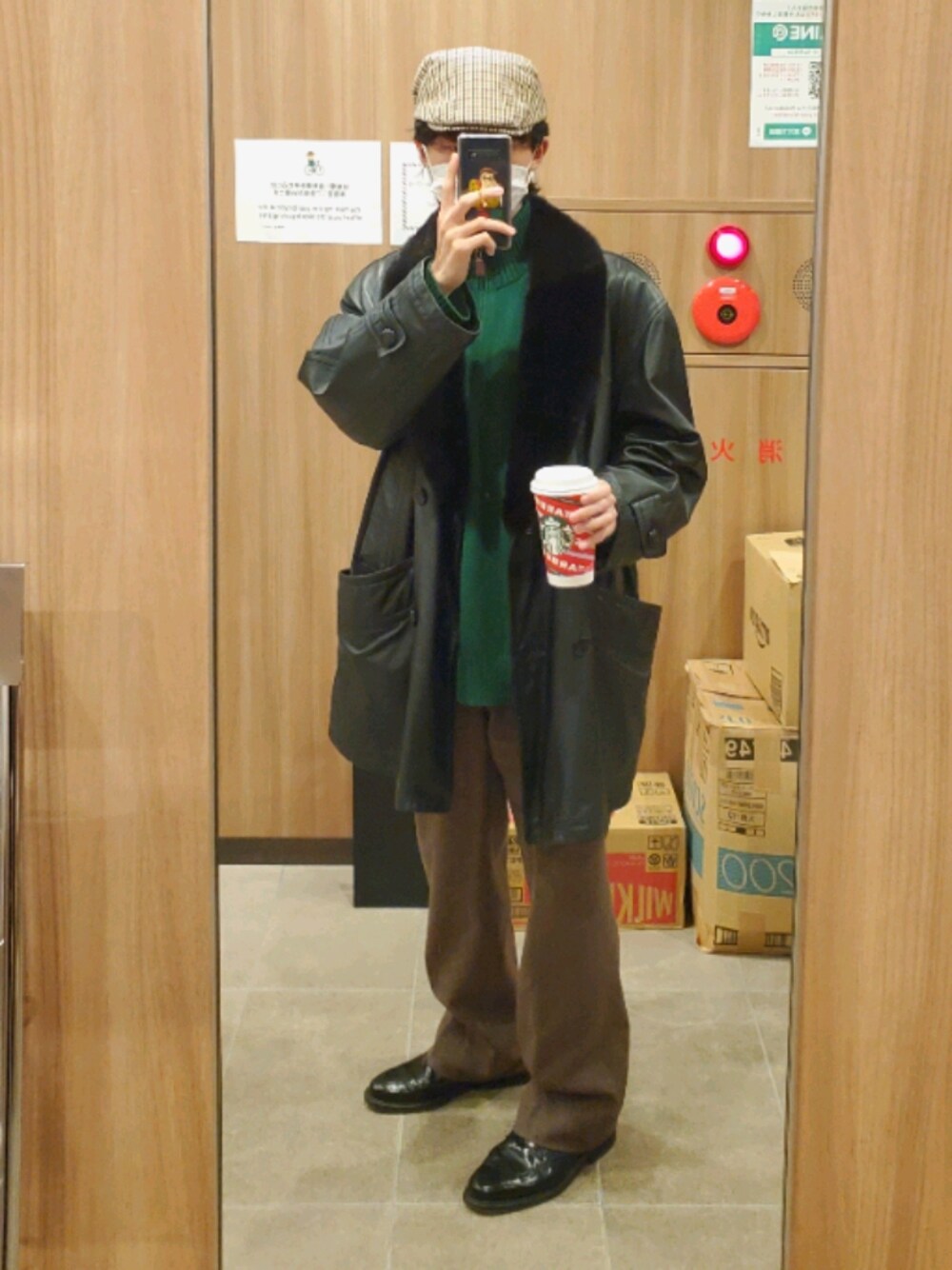アウターを紹介したすぎて近所のスタバ行くがてら着替えたコーデ つい先日購入した90s〜00sあたりのラムのコートです!かっこよすぎて一目惚れしました。傷もなく新品同様のアイテムなので、一生大事に着ていこうと思いました。ちなみに当時の定価で50〜60万くらいだそうです🤯