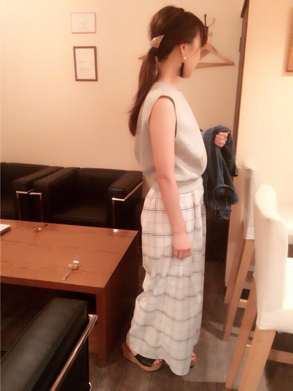 ワイドガラパンのゆるゆるスタイル♡ カジュアルになり過ぎないようにヒールと小物でオトナ女子感❤️❤️⇦キャラじゃないw 女子会楽しかったです🍷💕💕