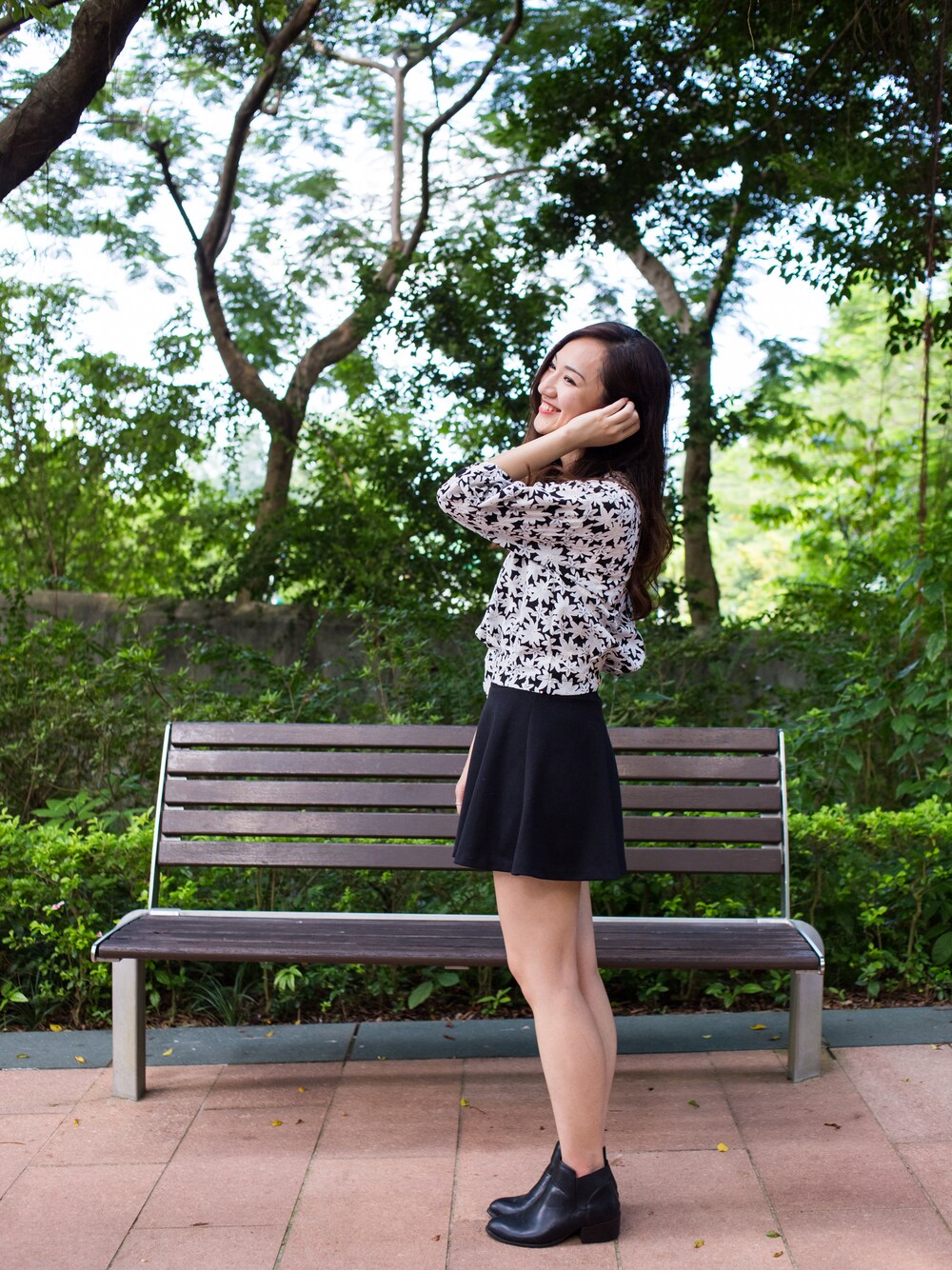 Floral top is a must Korean style with a short skirt and ankle boot All from my online shop - elyn