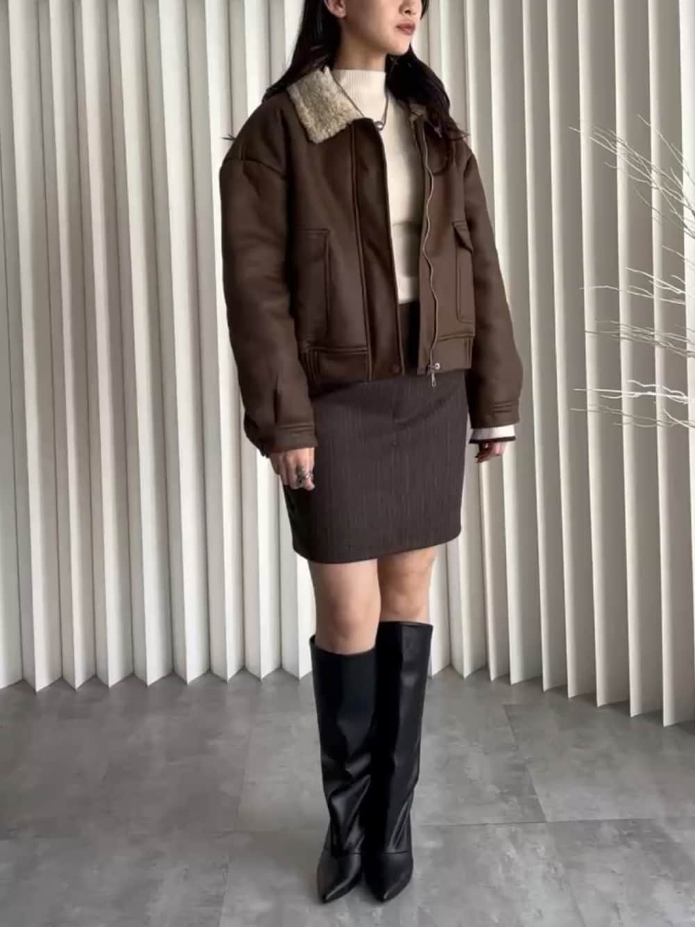 yennastaff(YENNA)のブルゾン「ビッグムートン裏ボアブルゾン」を使ったコーディネート