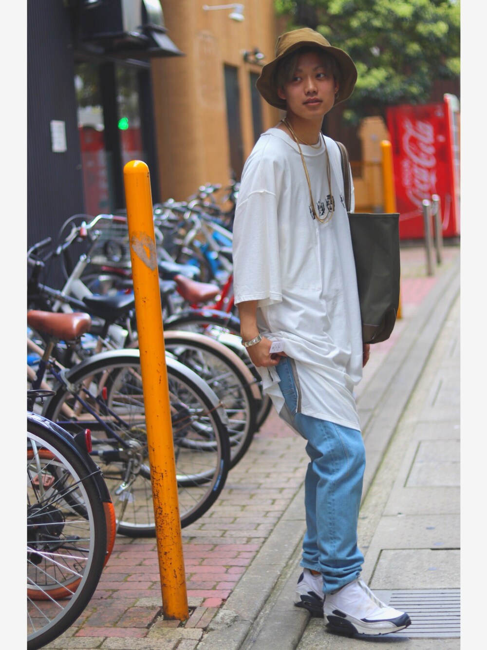 HUMISのナイトロングTシャツ。 ロングの丈感が雰囲気抜群です。 ストリートライクな使い方もいいですね🙌