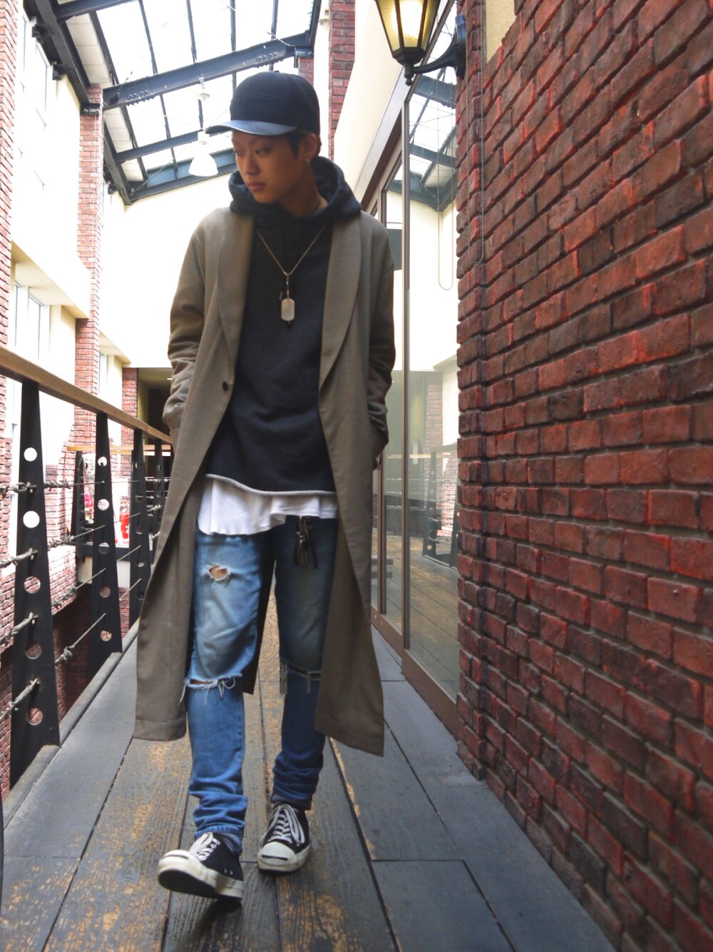 ネイティヴなガウンをストリートぽい着方で😎 今週から気温の寒暖差が激しいみたいなのでライトアウターのガウンは欠かせないです!!