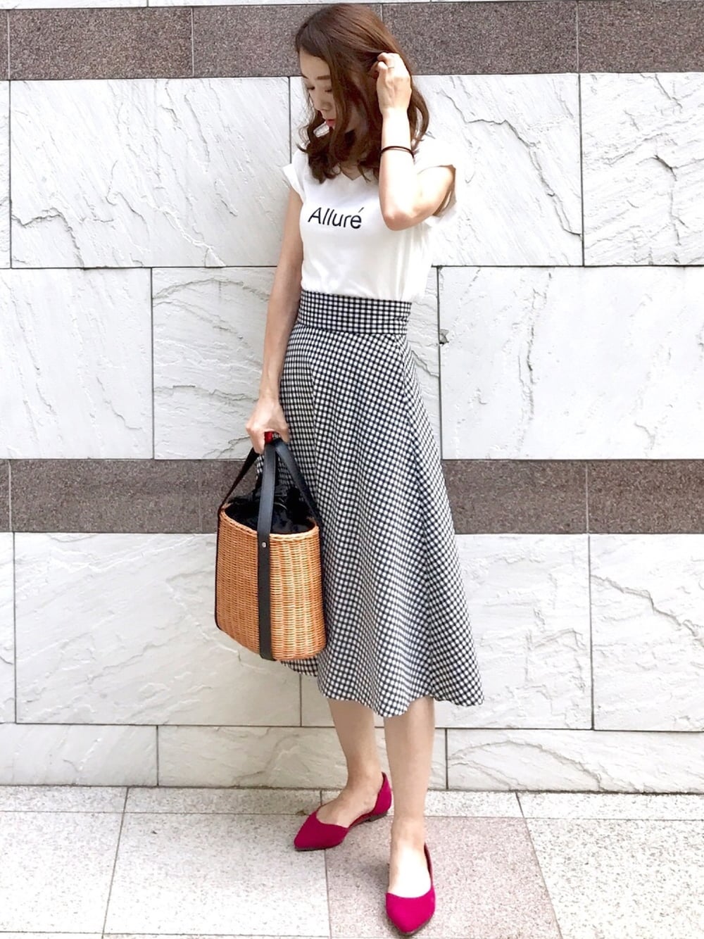 一日内勤の日のお仕事コーデ。 健康診断の待ち時間で読んだ美人百花に載ってた、「モノトーンにピンクさし」💕 ロゴTを女子っぽく着たかったので、袖をロールアップしてフレンチスリーブっぽく見せたのがポイント☝️ インスタ→@soliabe5787