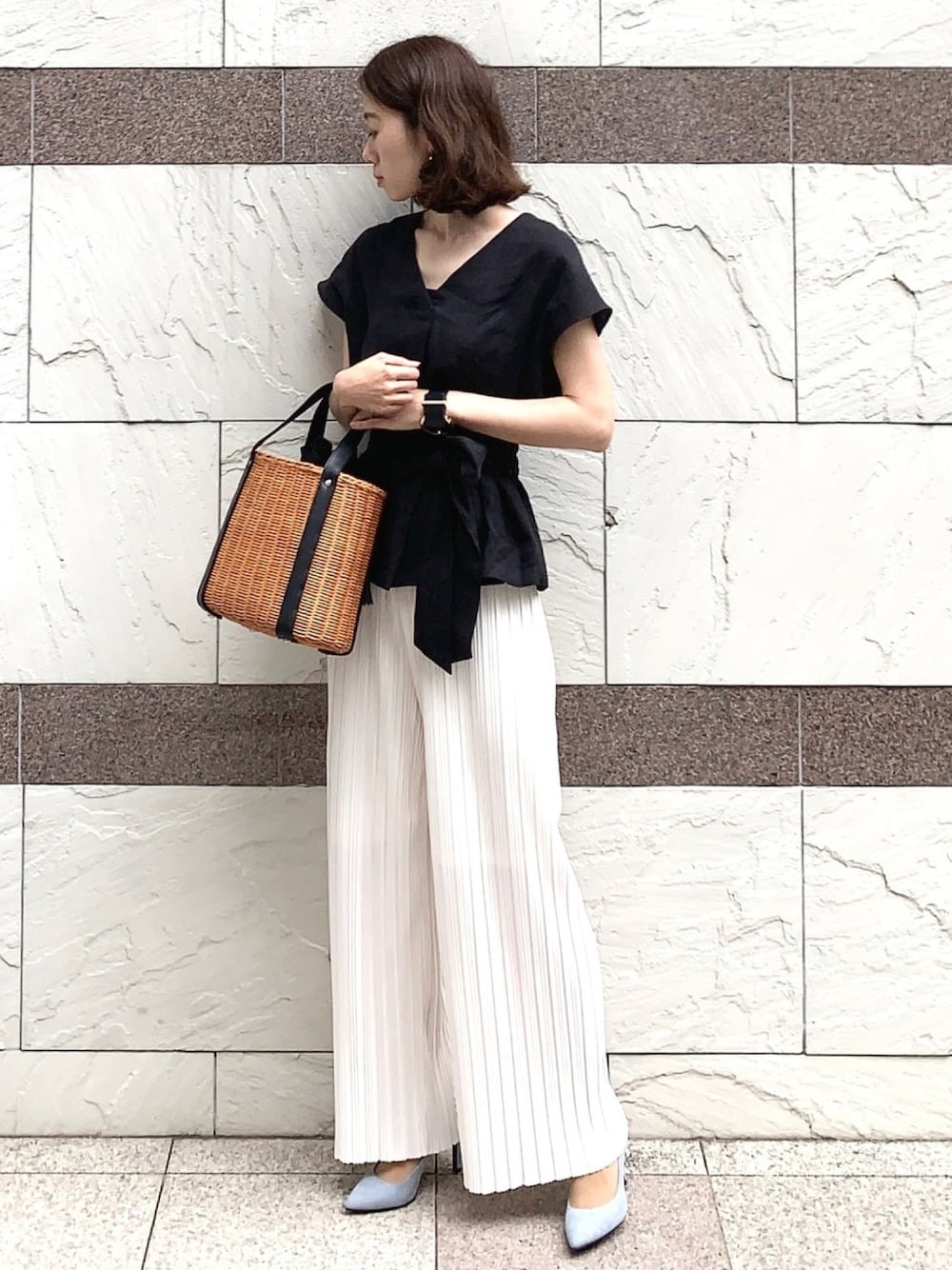 soliのシャツ/ブラウス「2WAYリネンリボンブラウス」を使ったコーディネート