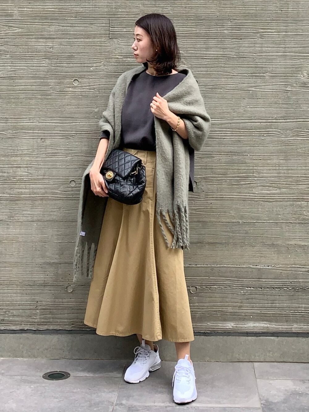 休日コーデ このマフラー、ショールみたいに使っても可愛い!暗い色になりがちな秋冬コーデに華を添えるカラーリングも🙆♀️✨ インスタ→@soliabe5787