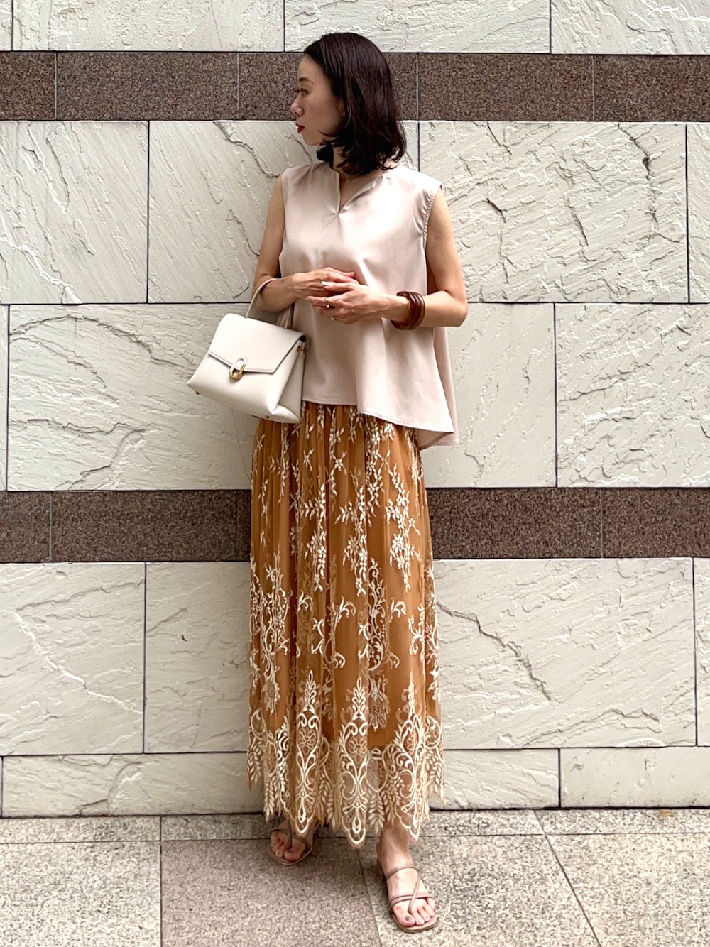 在宅勤務のきれいめカジュアルコーデ ノースリーブブラウスを着回し。 前回はブラックを合わせましたが、オレンジ合わせでワントーンコーデっぽくしても可愛いのはブラウスのカラーが絶妙だからだろうなぁ🥺✨ オフィスカジュアルや通勤コーデとしてもgoodなアイテムです🙌 インスタ→@soliabe5787