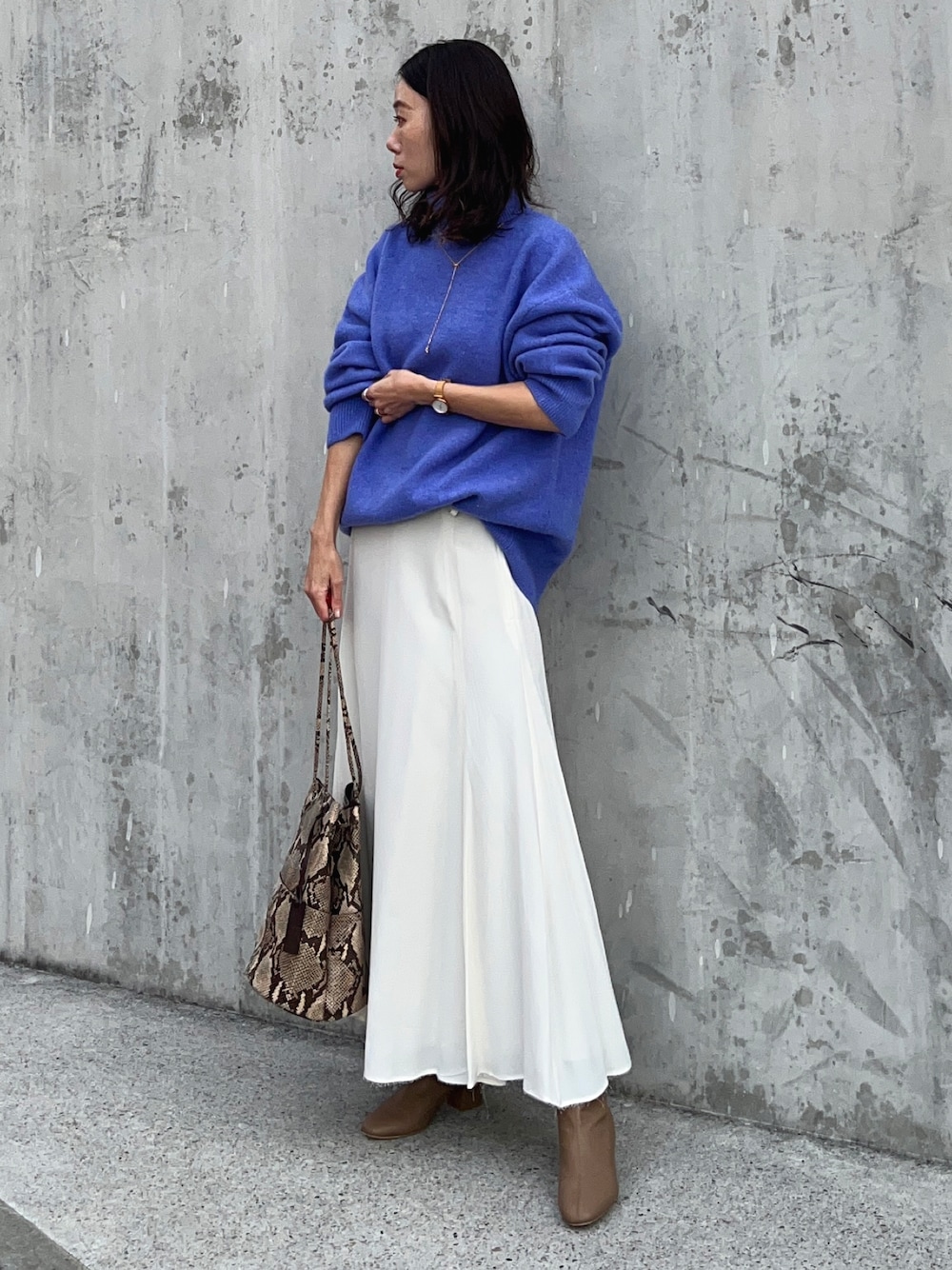出社日オフィスカジュアル 【初対面は好印象な優しい色合いで】 初めてお会いする方がいる時は 優しい印象に見えるように黒を使わない コーデにすることが多いです。 今回はセール購入品として以前紹介した ホワイトのスカートに今期購入したZARAの カラーニットを合わせて。 ブーツ、アウターも淡い色なので バッグで濃い色と柄を足してメリハリを 付けています。 インスタ→@soliabe5787